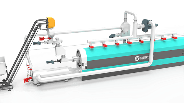全連續煉油設備由反應釜、驅動系統、取樣器、螺旋除渣器、汽包系統、靜電除塵器、水冷出渣機、油氣冷凝系統、水冷炭黑儲存罐、螺旋進料機、稱重機、料倉等幾部分組成